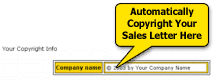 Just enter your company name and the new software will automatically copyright your sales letter.