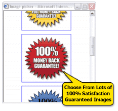 Just make your selection and the guarantee image you choose is automatically added to your page.